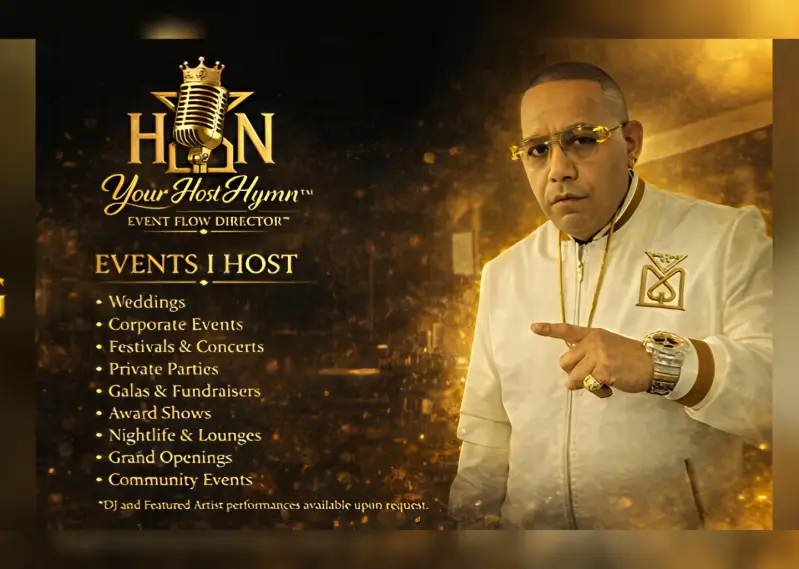 With 15+ years hosting live events and more than three decades of stage experience, Hymn Kyng is more than an emcee — he is an Event Flow Director™ who keeps the energy high, the schedule on track, and audiences fully engaged.